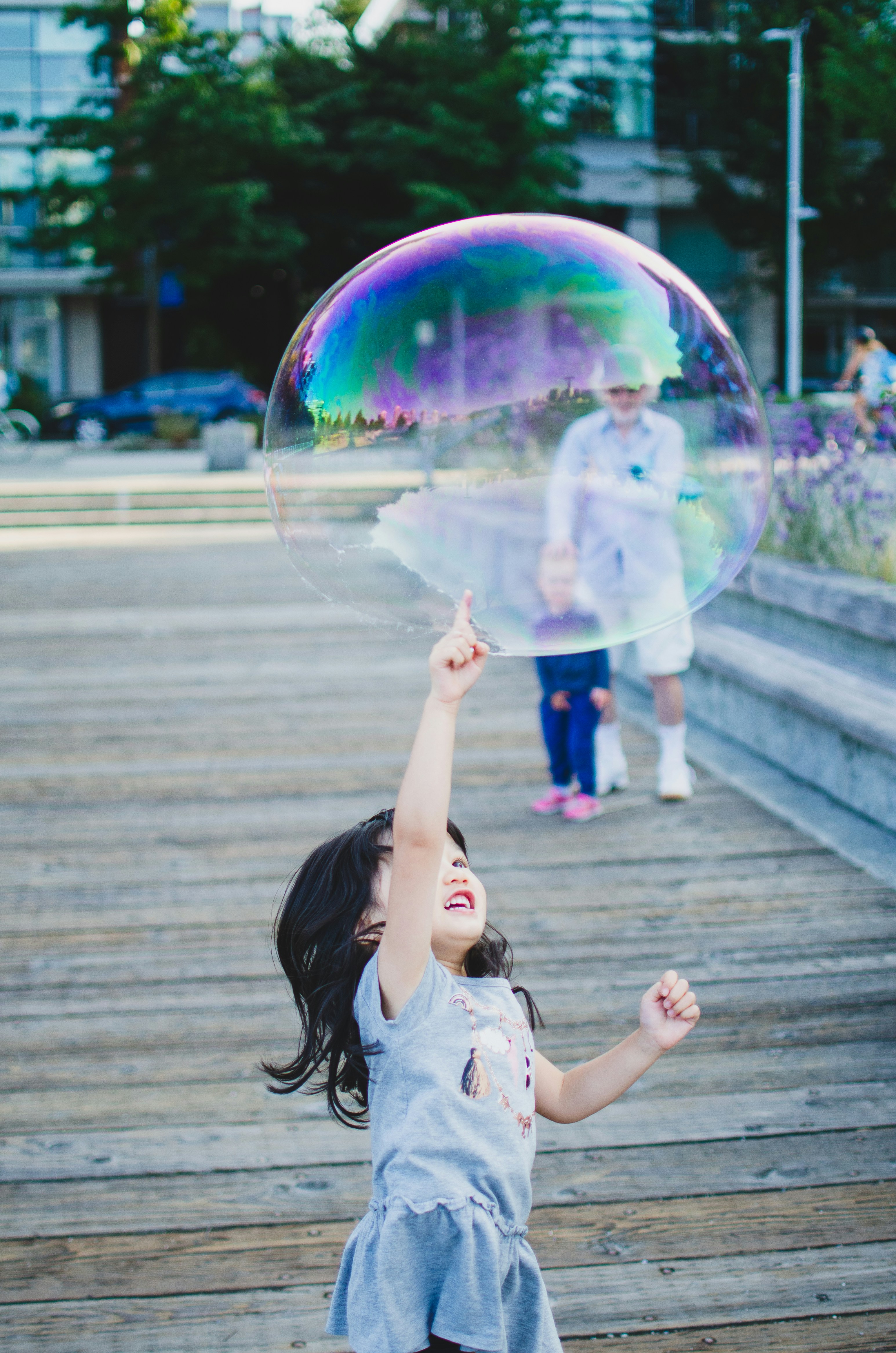 smiled at a child lost in the game.