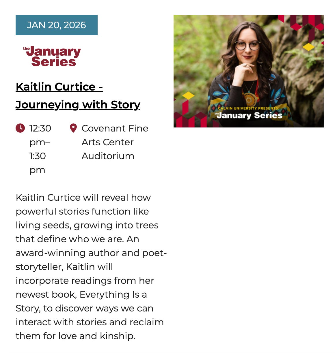 Please come see me, either at Calvin College for their January speaker series, or at Books & Mortar, where I’ll be doing a reading on Everything Is a Story followed by a book signing.