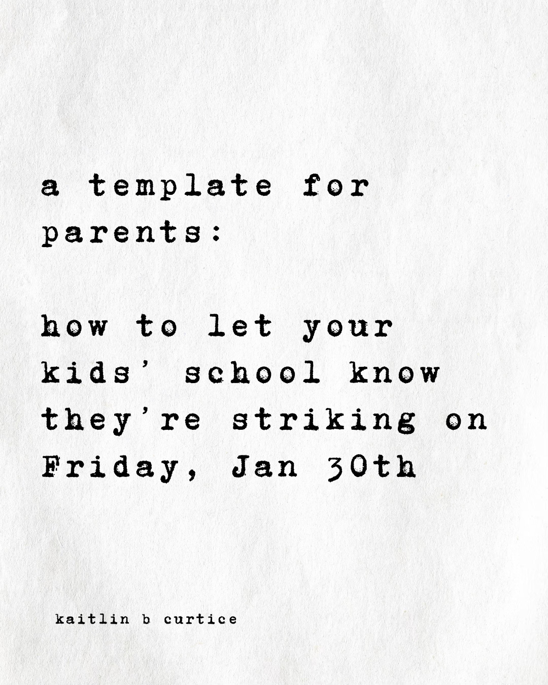 This first one is a resource for parents and/or caregivers of children in school. On Friday, January 30th, we are keeping our kids home from school. Now, we have the privilege to be able to do so; I know many parents cannot strike on Friday. If you can’t, I get it.