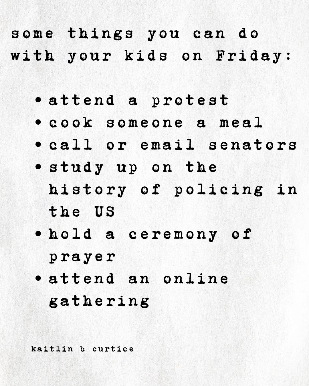 I’m writing today to share some community resources for this week and next, plus some words that I hope land right in your space, your heart, with your community.