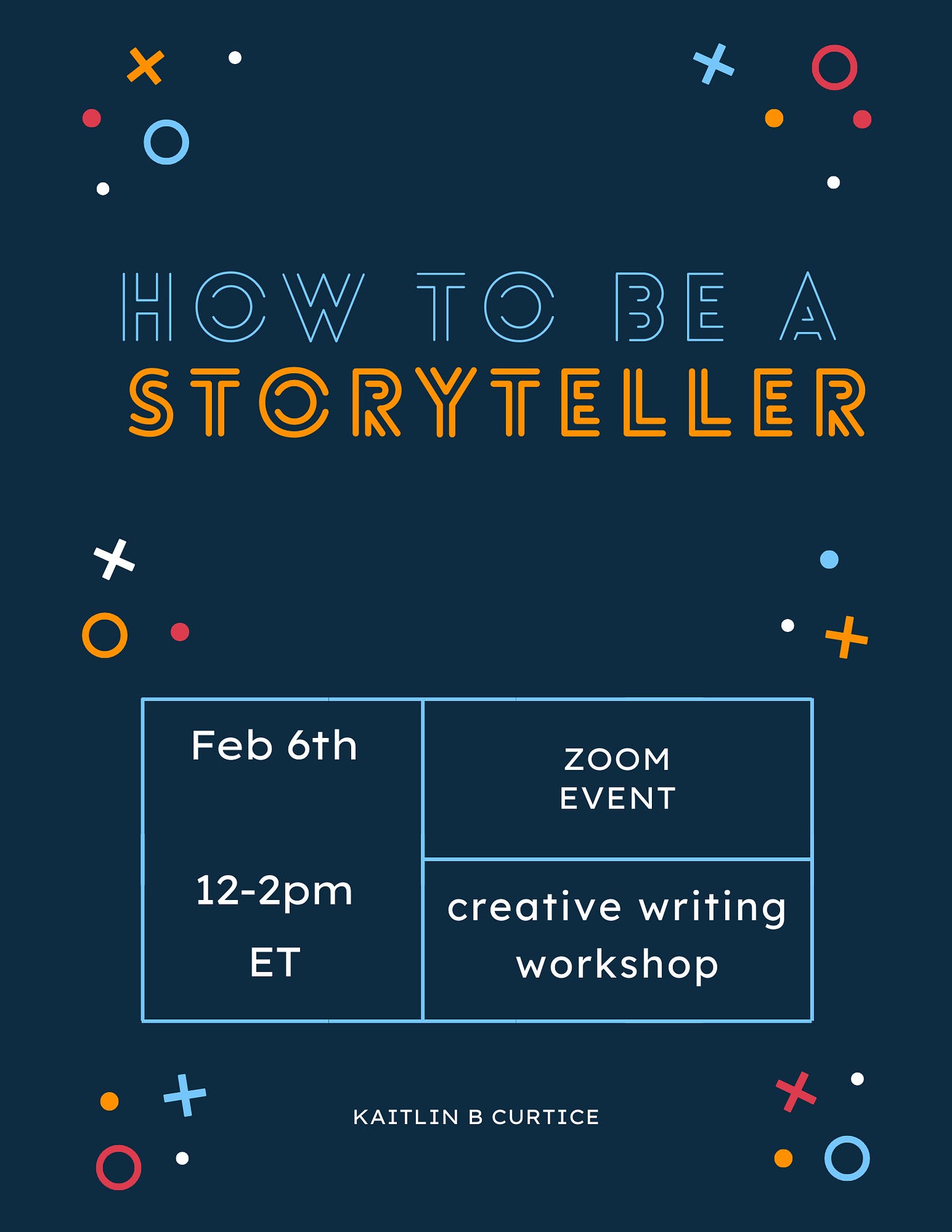Last, I’m hosting an online storytelling and sharing space next Friday, February 6th.