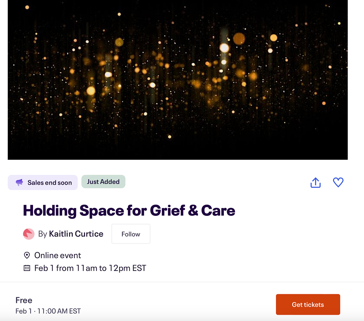 This is a space for grief and care; we will share, journal, and sit with one another in kinship. It is for our souls, for our rest.